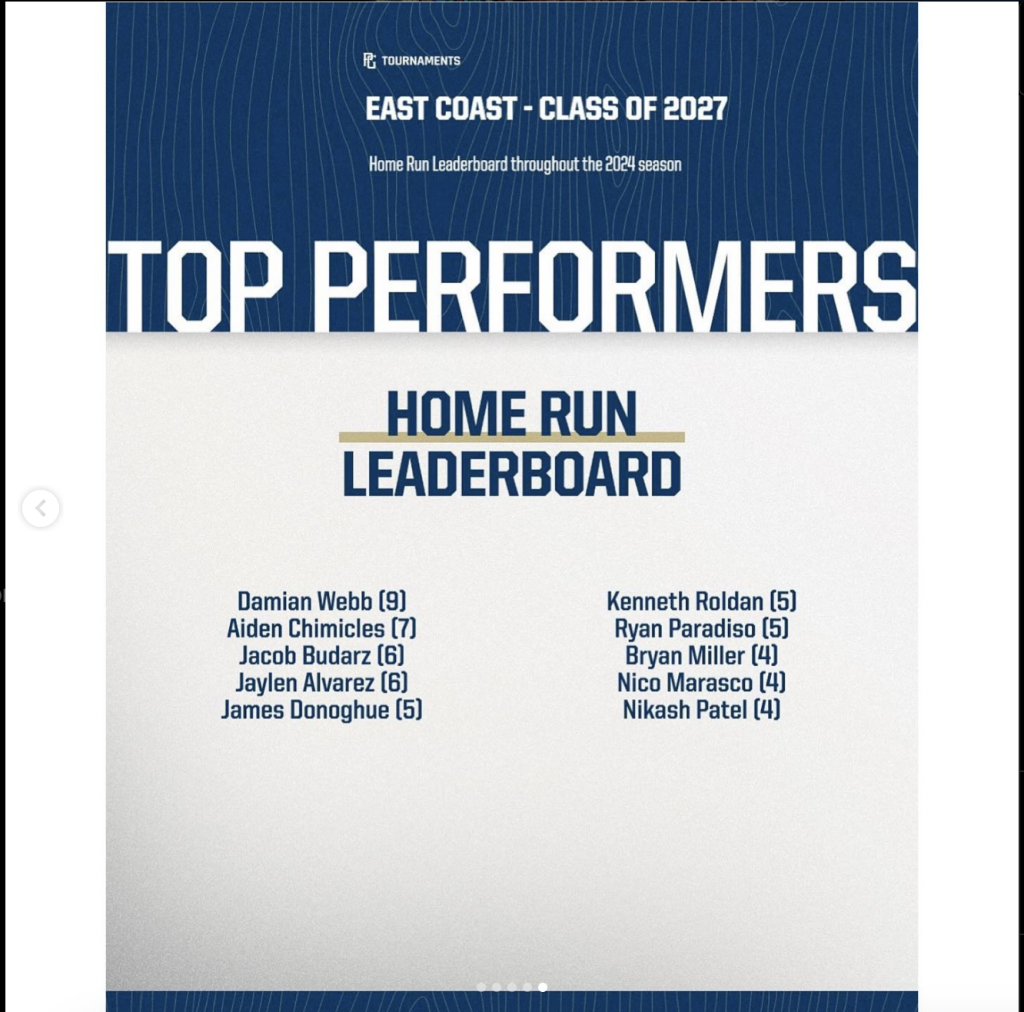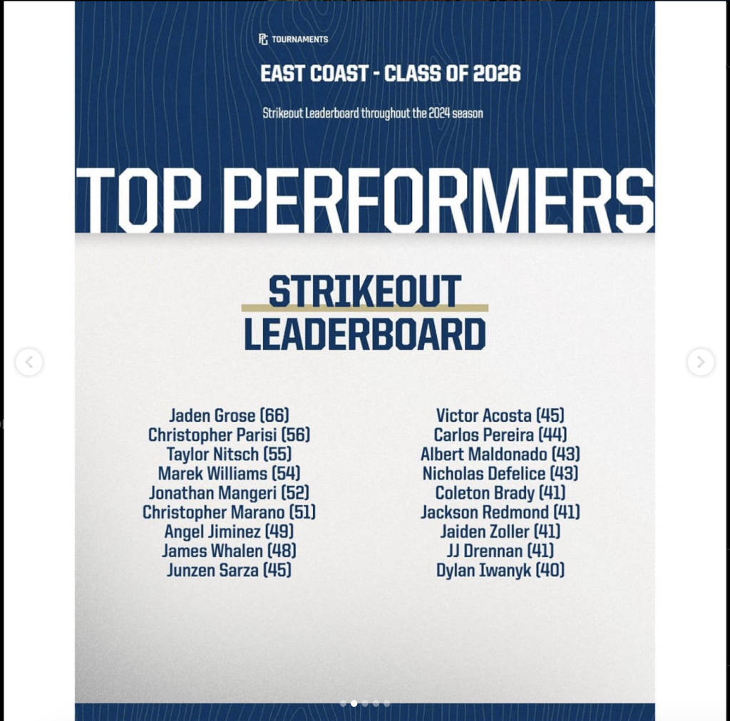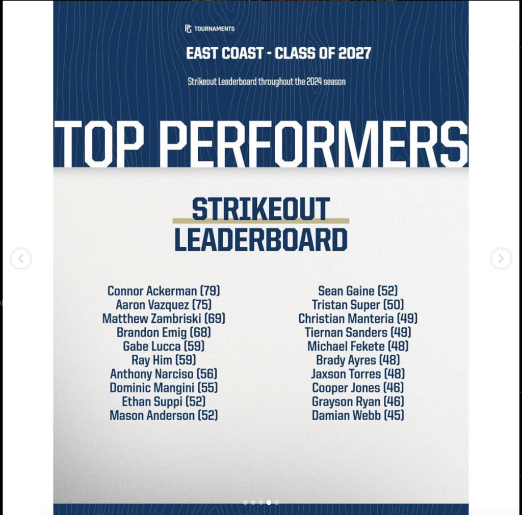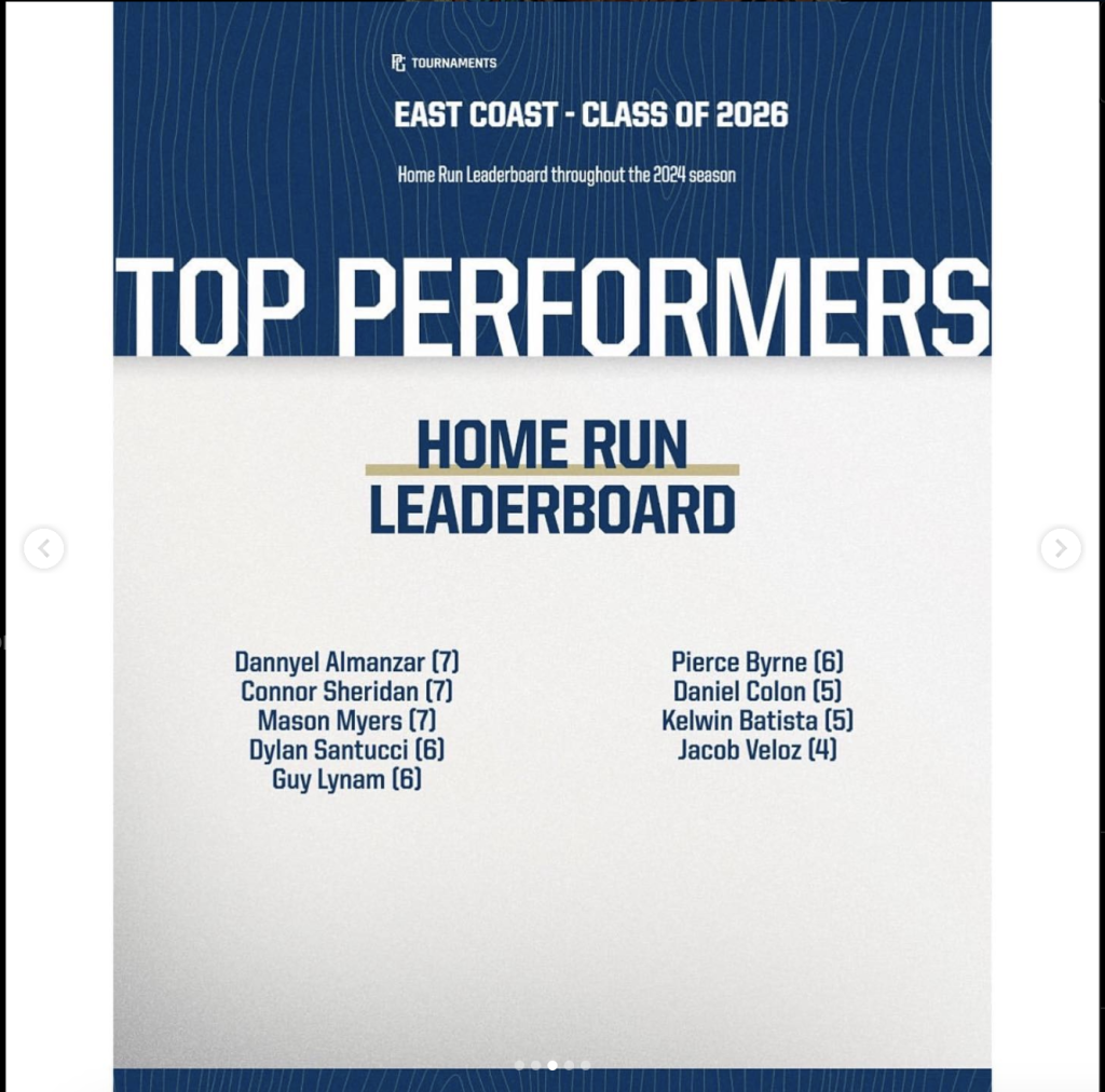 This week Perfect Game (@pg_eastcoast) released their end of year top tournament performers on the East Coast for the 2026 and 2027 classes. Showtime had players lead their respective classes in both Strikeouts and Home Runs as well as others make the list⚾️